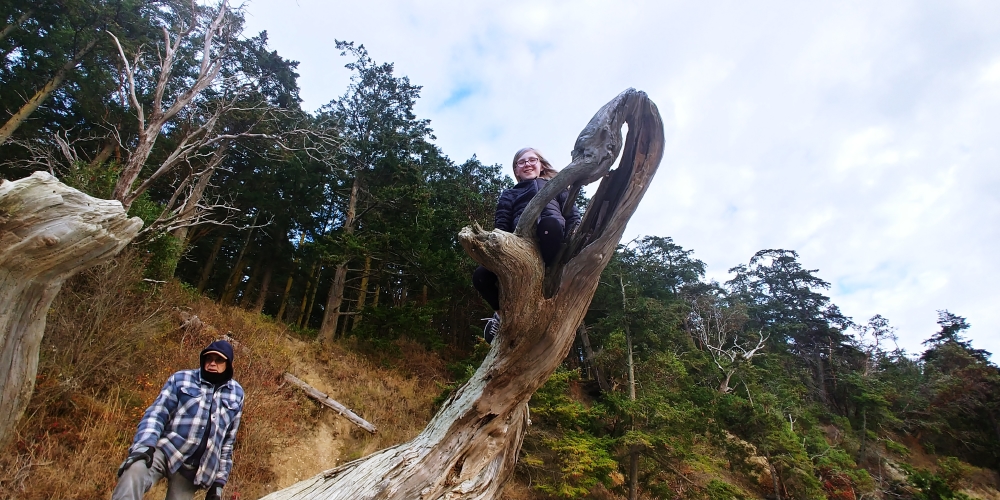 Tom with Anna on driftwood