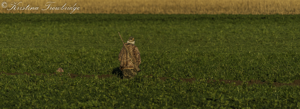 Two hunters hunting Snow Geese close to the road at sunset