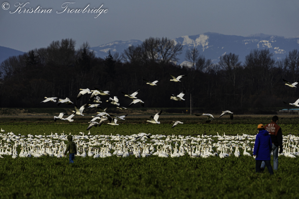 Family harassing the Snow Geese to fly