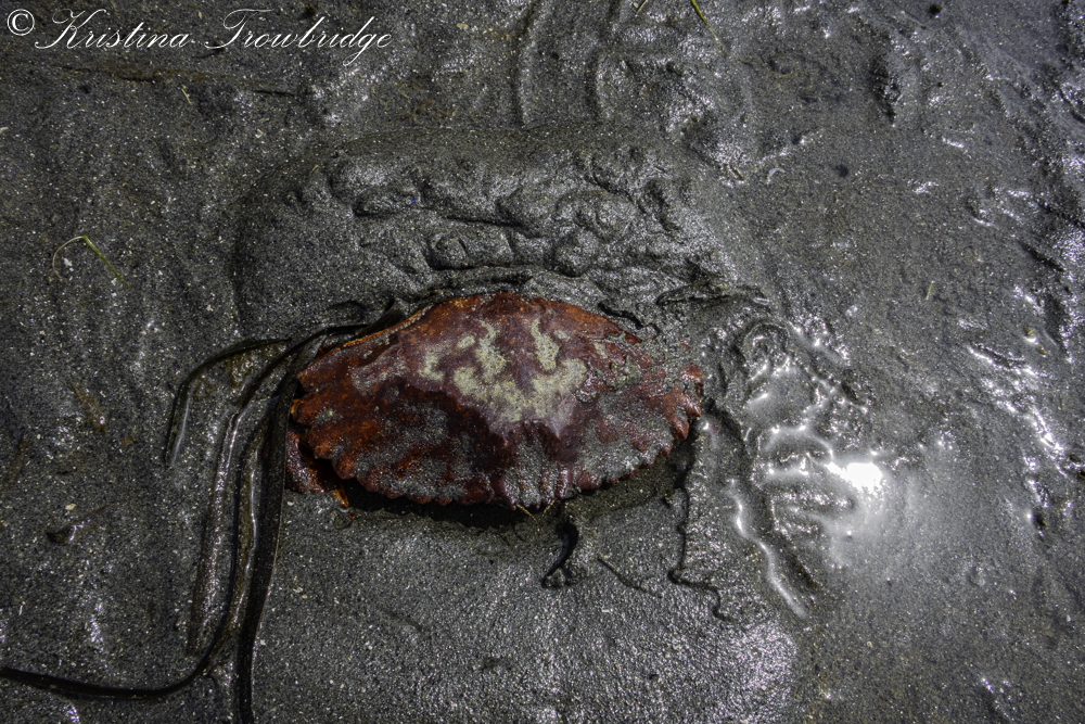 Red Rock Crab burrowing into the sand