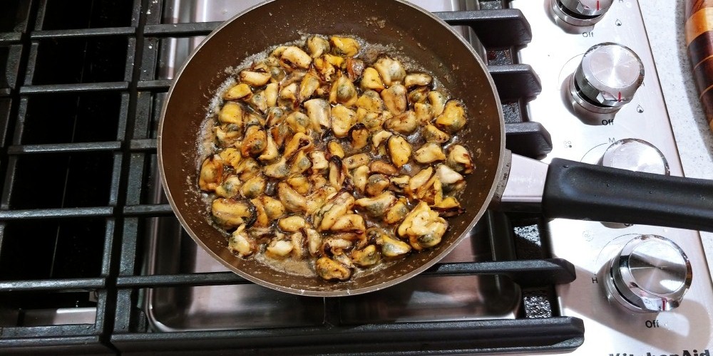 Mussels cooked in butter and spices