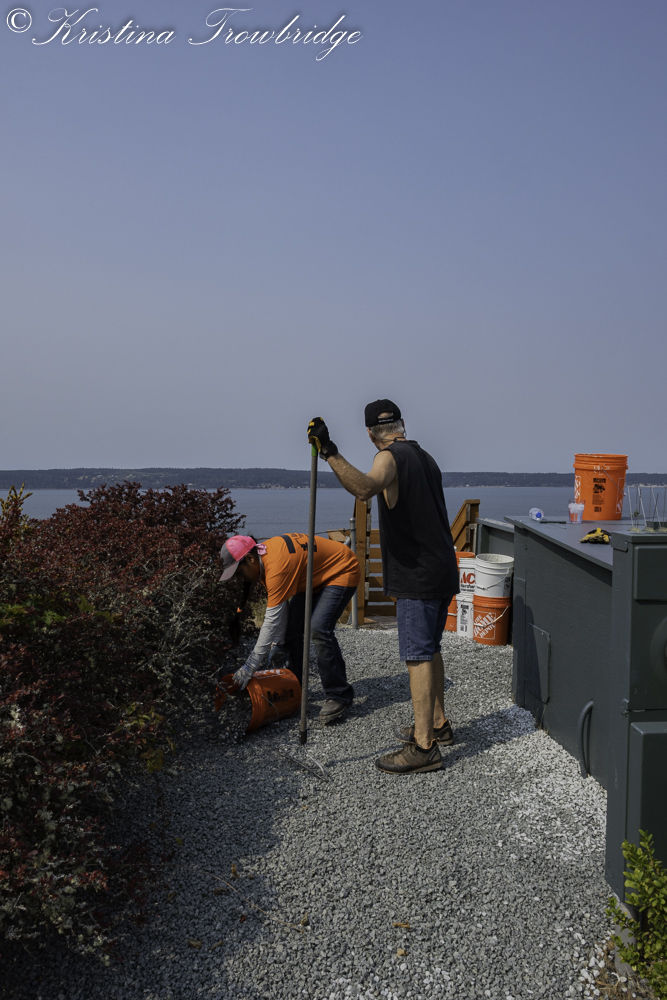 Bruce raking rocks at the top of tram