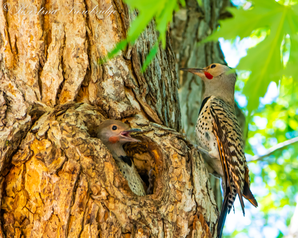Mama Flicker feeds her chicks