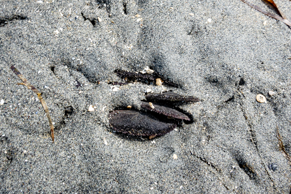 A deposit of sand dollars in the sand bank