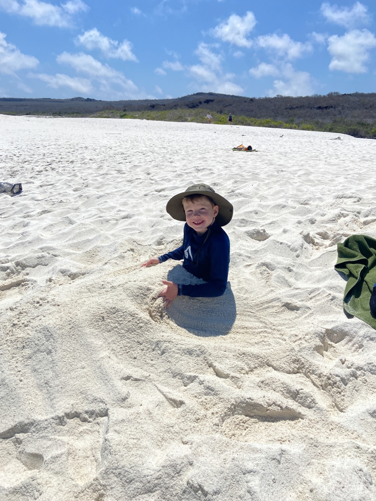 Silas buried in the sand