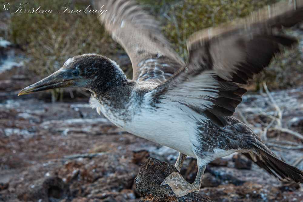 Nazca Booby chick trying its wings
