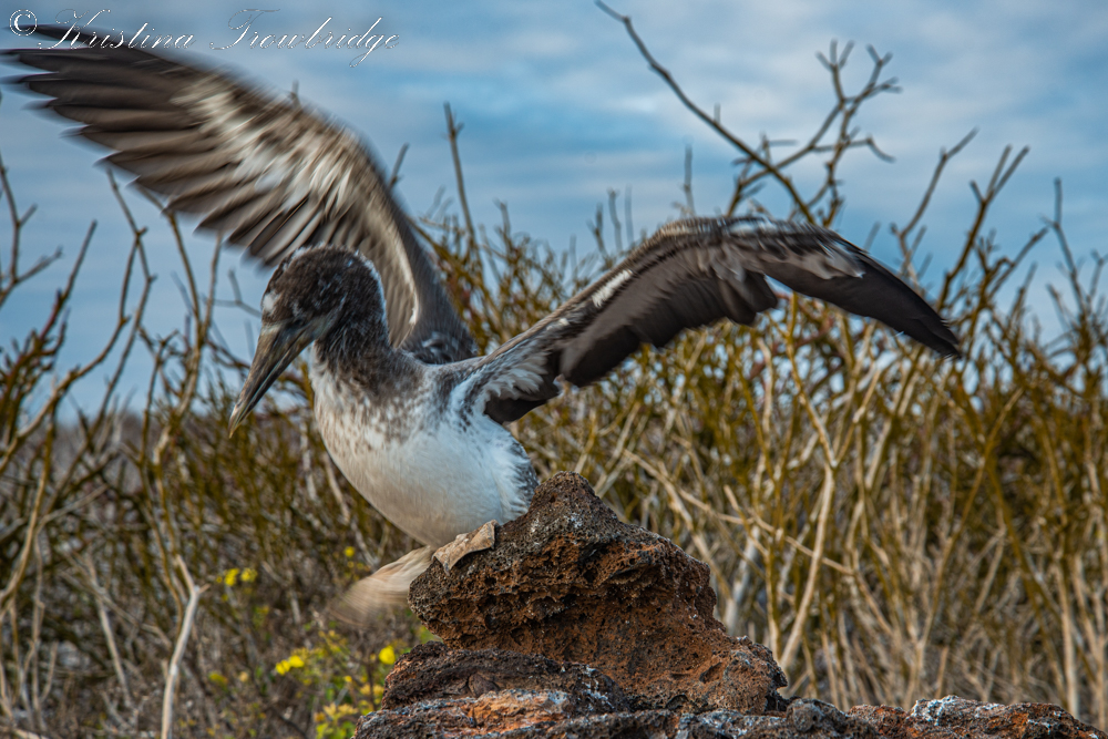 Nazca Booby chick trying its wings