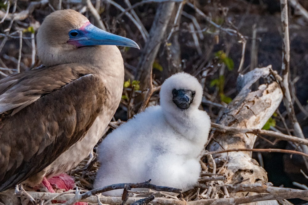 Red-footed Booby and chick
