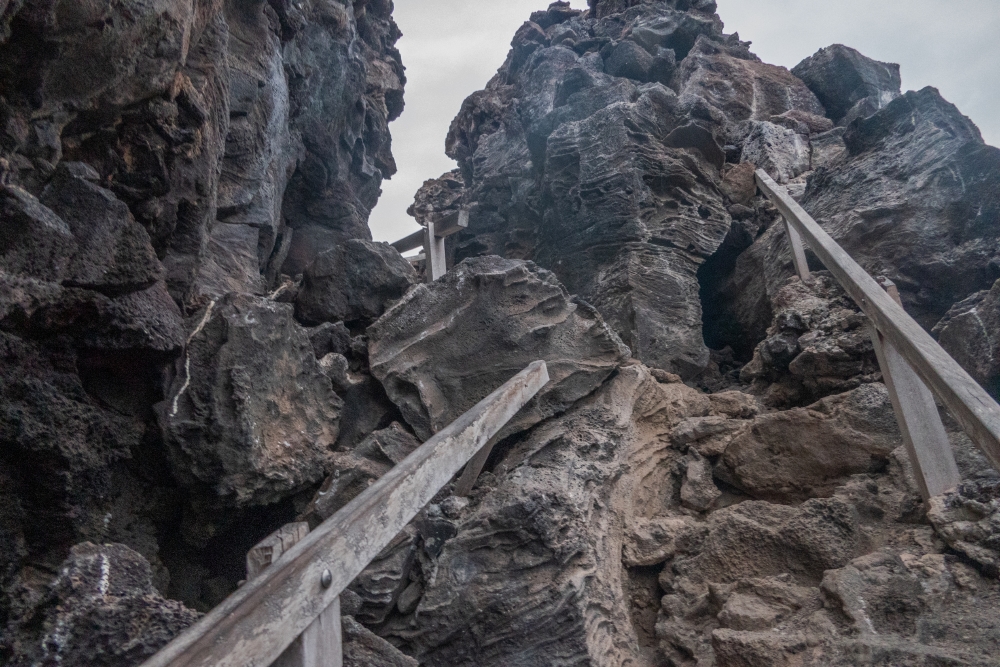Steep steps down