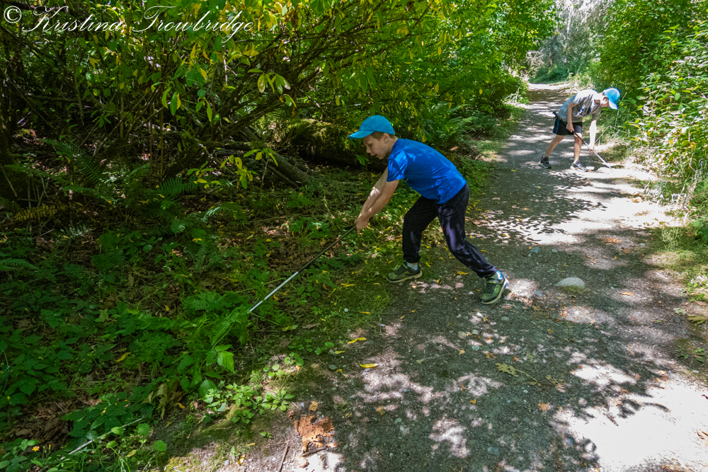 James and Nathan whacking nettles