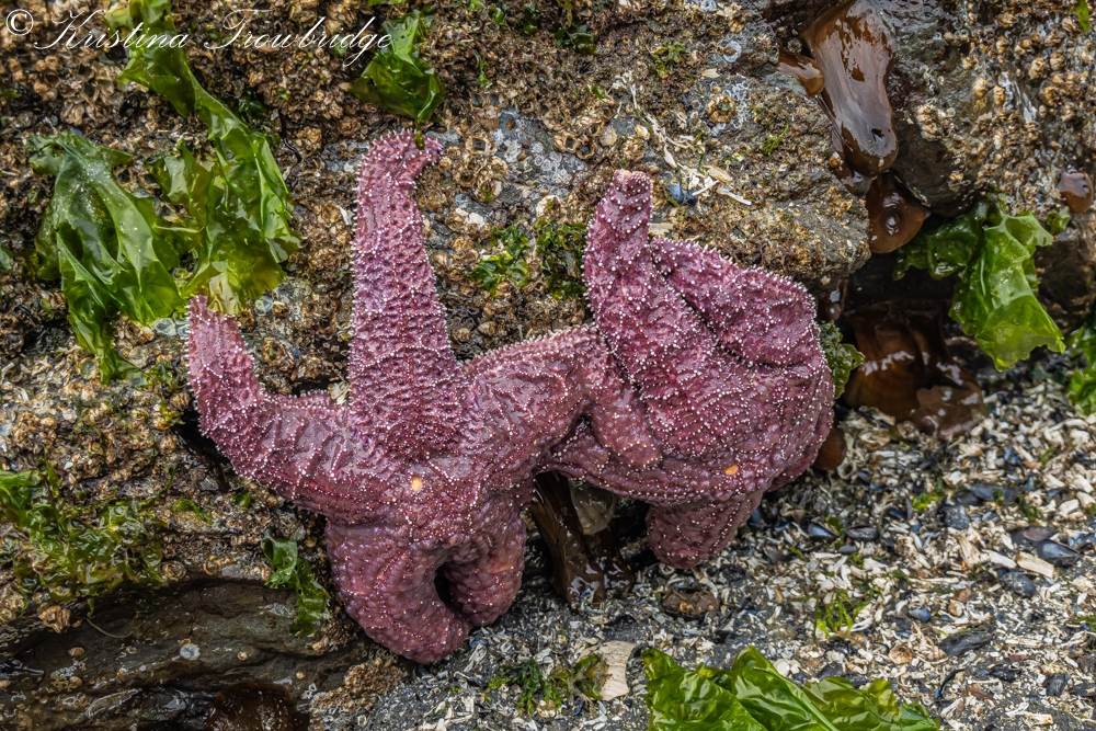 Purple sea stars under a rock