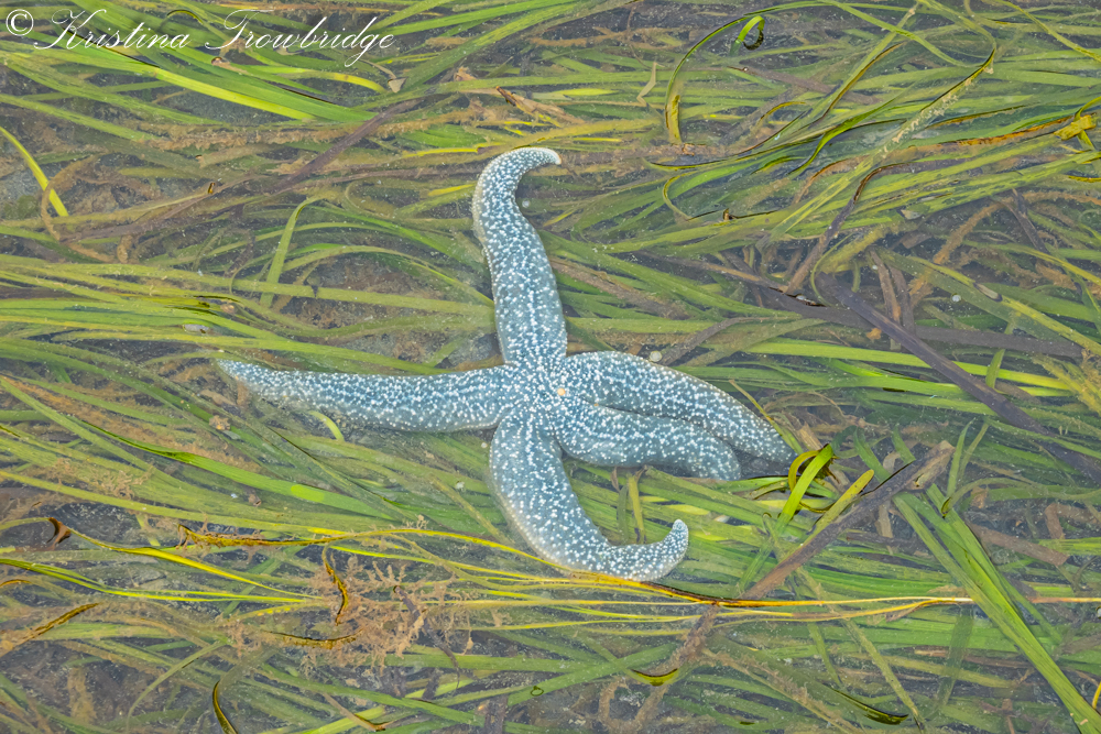 Blue sea star under water